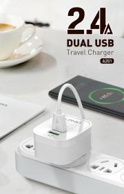 LDNIO φορτιστής τοίχου A201 με καλώδιο USB-C, 2x USB, 12W, λευκός