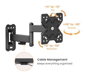 POWERTECH επιτοίχια βάση τηλεόρασης PT-1423, 37-90", 75kg, heavy duty, full motionΟι βάσεις τηλεοράσεων της Powertech διακρίνονται για την στιβαρή κατασκευή και την μελετημένη, εργονομική σχεδίαση τους.Υποστηρίζουν πρότυπα VESA των πιο διαδεδομένων διαστάσεων και cable management σχεδίαση, για την βέλτιστη οργάνωση των...