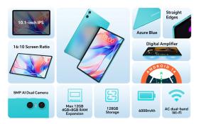 TECLAST tablet P30, 10.1", 4/128B, Android 14, 6000mAh, μπλε