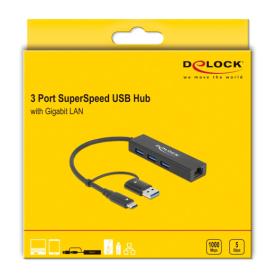 DELOCK docking station 64149, 4 θυρών, USB & USB-C σύνδεση, μαύρο
