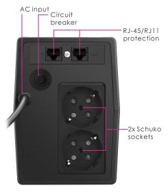 POWERTECH UPS Line Interactive PT-850LCD με οθόνη, 850VA, 510W, 2x Schuko, 2x RJ45/RJ11