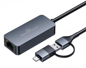 POWERTECH αντάπτορας δικτύου PTR-0149, USB & USB-C, 1000 Mbps, γκρι