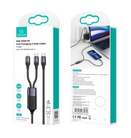 USAMS καλώδιο USB-C σε USB-C & Lightning US-SJ550, PD 100W, 1.2m, μαύρο