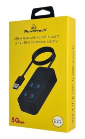 POWERTECH USB 3.2 hub PTR-0153, 4x θυρών, 5Gbps, USB σύνδεση, μαύρο