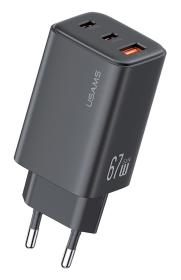 USAMS φορτιστής τοίχου CC265, USB & 2x USB-C, 67W, GaN, μαύρος