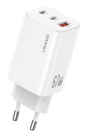 USAMS φορτιστής τοίχου CC265, USB & 2x USB-C, 67W, GaN, λευκός