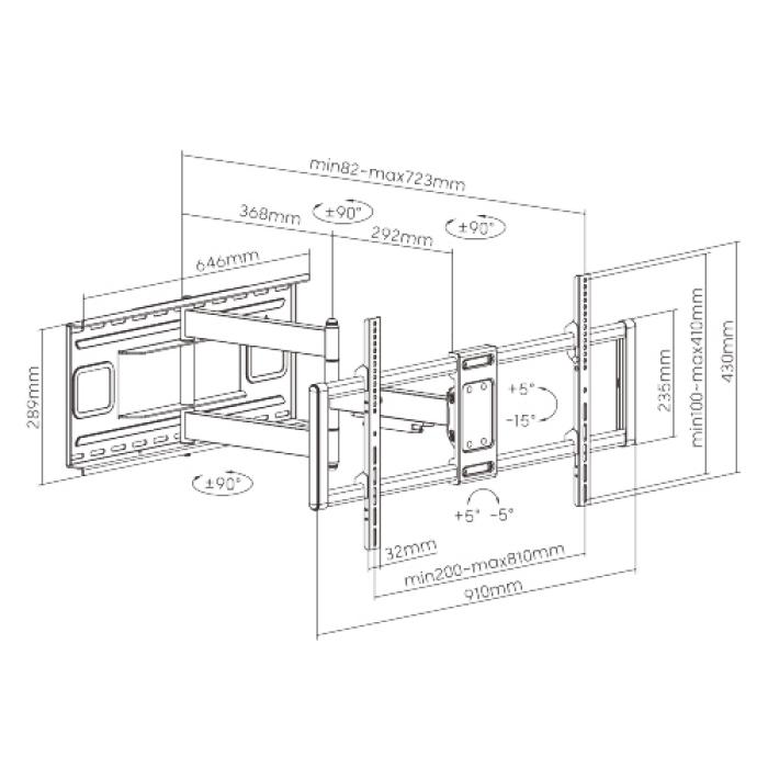 BRATECK επιτοίχια βάση τηλεόρασης LPA77-483, 43-90", 80kg, heavy duty, full motion