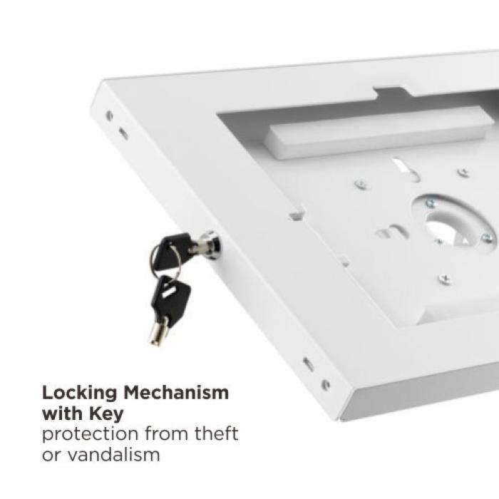 Μεταλλική βάση για tablet από 9.7" έως 11" με αντικλεπτικό μηχανισμό κλειδώματος με κλειδί. Η επιφάνεια τοποθέτησης του tablet διαθέτει αντιολισθητικά pads σιλικόνης ώστε να είναι πιο σταθερή και να μην γλιστράει η συσκευή.