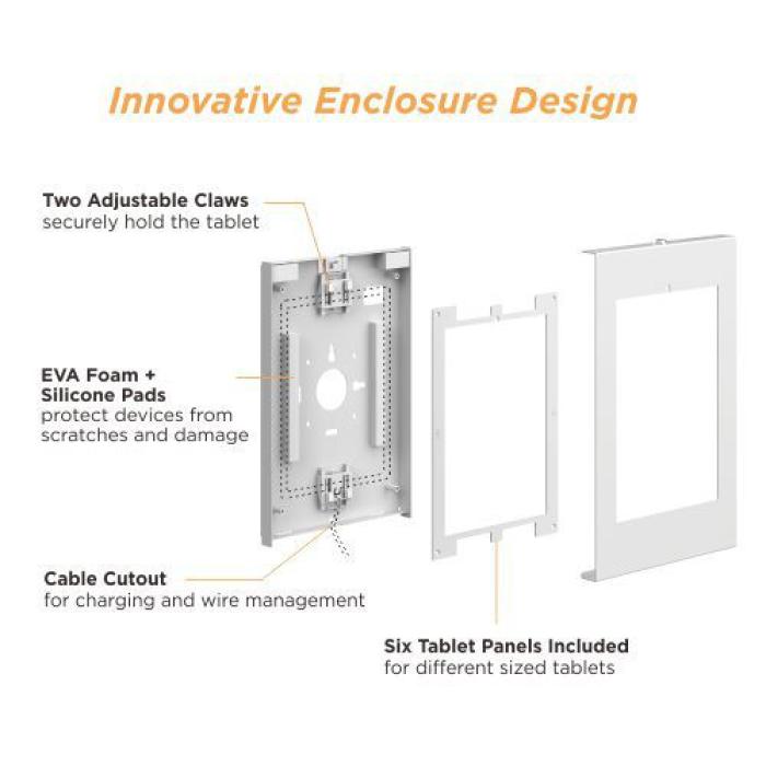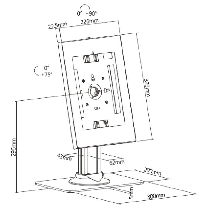 Μεταλλική βάση για tablet από 9.7" έως 11" με αντικλεπτικό μηχανισμό κλειδώματος με κλειδί. Η επιφάνεια τοποθέτησης του tablet διαθέτει αντιολισθητικά pads σιλικόνης ώστε να είναι πιο σταθερή και να μην γλιστράει η συσκευή.