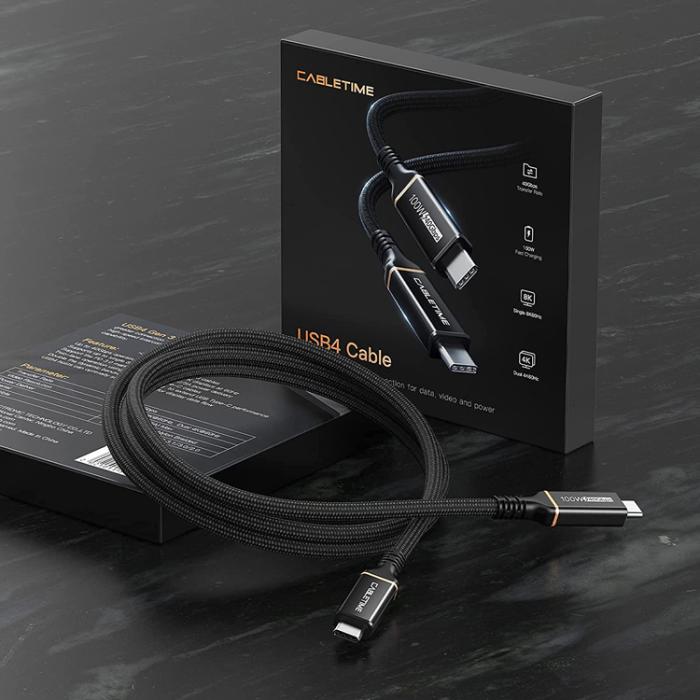 CABLETIME καλώδιο USB-C CT-USB4, 100W, 8K, 40Gbps, 1m, μαύρο