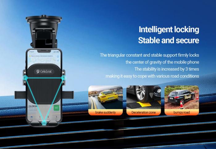 Συγκρατεί το smartphone σταθερό και ασφαλές με έναν έξυπνο μηχανισμό συγκράτησης, ο οποίος ενεργοποιείται κατά την τοποθέτηση της συσκευής. Η απασφάλιση γίνεται πιέζοντας τα πλαϊνά κουμπιά της βάσης.