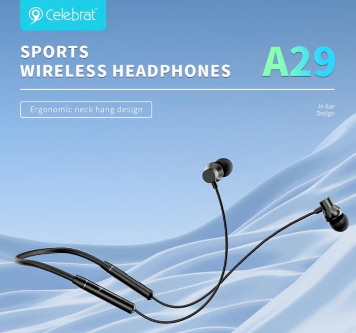 CELEBRAT earphones A29 με μαγνήτη, Bluetooth, 10mm, 80mAh, μαύρα