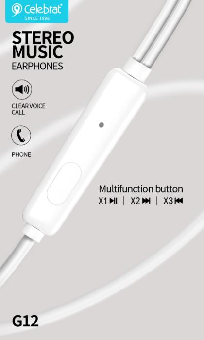 CELEBRAT earphones με μικρόφωνο G12, 3.5mm σύνδεση, Φ14.2mm, 1.2m, μαύρο