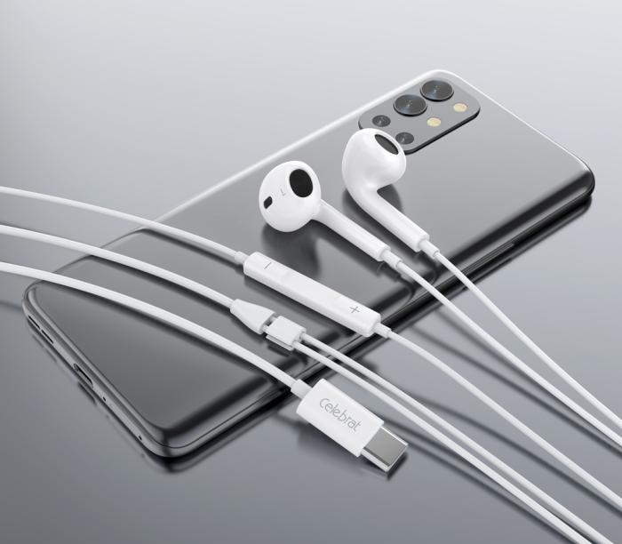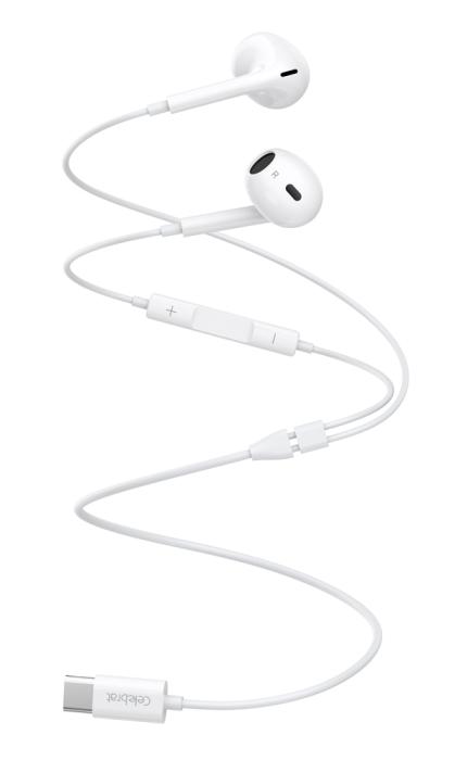 CELEBRAT earphones με μικρόφωνο E400, USB-C σύνδεση, Φ14mm, 1.2m, λευκά