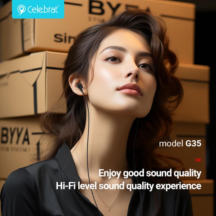 CELEBRAT earphones με μικρόφωνο G35, 3.5mm σύνδεση, 10mm, 1.2m, μαύρα