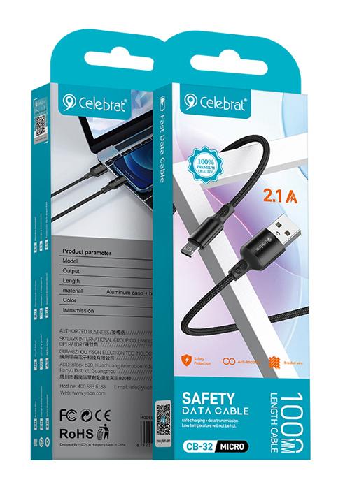 CELEBRAT καλώδιο Micro USB σε USB CB-32, 2.1A, 1m, μαύρο