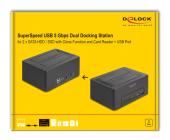 DELOCK docking station για 2.5" ή 3.5" SATA HDD/SSD 64183, 2 θέσεων, με card reader, 5Gbps, clone function, μαύρο