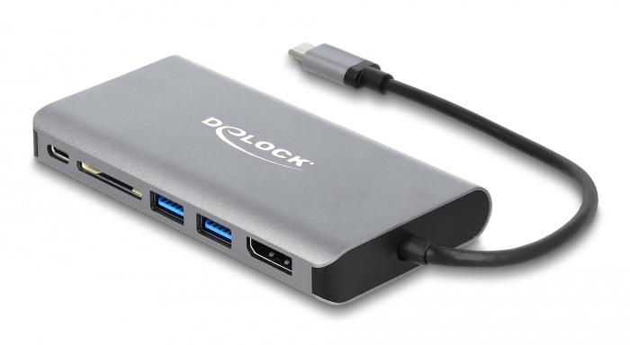 DELOCK docking station 87683, 7 θύρες, USB-C, 100W PD, 4K, MST, γκρι
