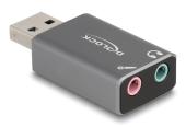 DELOCK εξωτερική κάρτα ήχου 66633, 2x 3.5mm, USB σύνδεση, γκρι