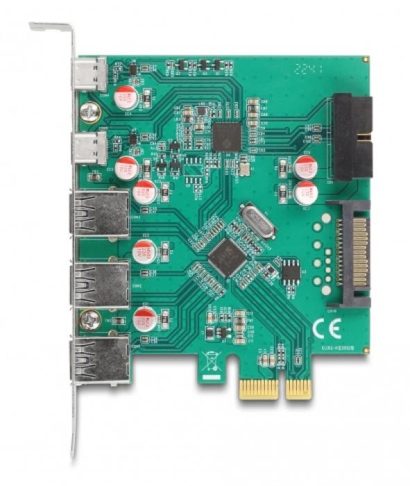 DELOCK κάρτα επέκτασης PCIe x1 σε 3x USB/2x USB-C/19-pin 90109, 5Gbps