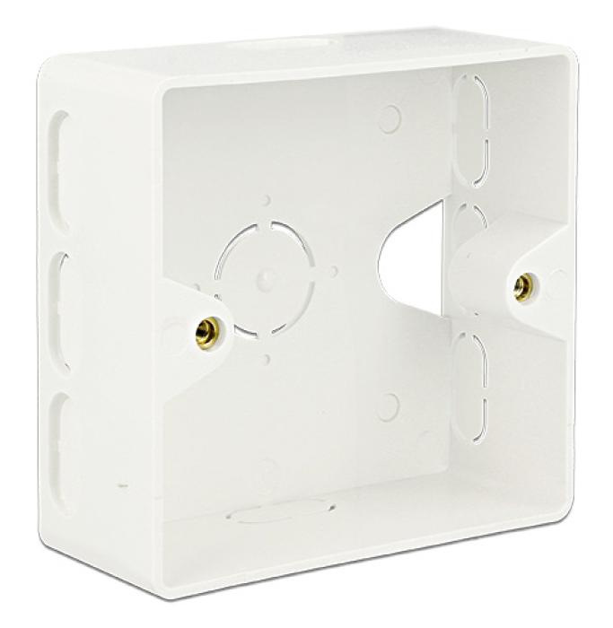 Οπίσθιο κουτί της Delock, μπορεί να χρησιμοποιηθεί για την επιφανειακή τοποθέτηση σε πρίζες τοίχου με υποδοχές των 60mm όπως της πρίζας τοίχου Delock Keystone 86202.