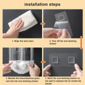 Η τοποθέτηση του γίνεται επιτοίχια με αυτοκόλλητο κλιπ (συμπεριλαμβάνεται) το οποίο αποσπάται από τη βάση του διανεμητή, διευκολύνοντας τον καθαρισμό του.
