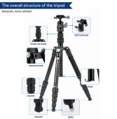 Διαθέτει πτυσσόμενο σχεδιασμό με το μέγιστο ύψος του να φτάνει τα 146.1cm και είναι κατάλληλο για φωτογραφικό εξοπλισμό με μέγιστο βάρος 8kg.