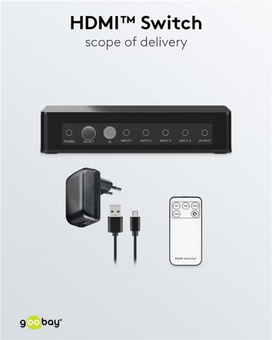 GOOBAY HDMI switch 58489 με τηλεχειριστήριο, 4 σε 1, 4K/60Hz, μαύρο