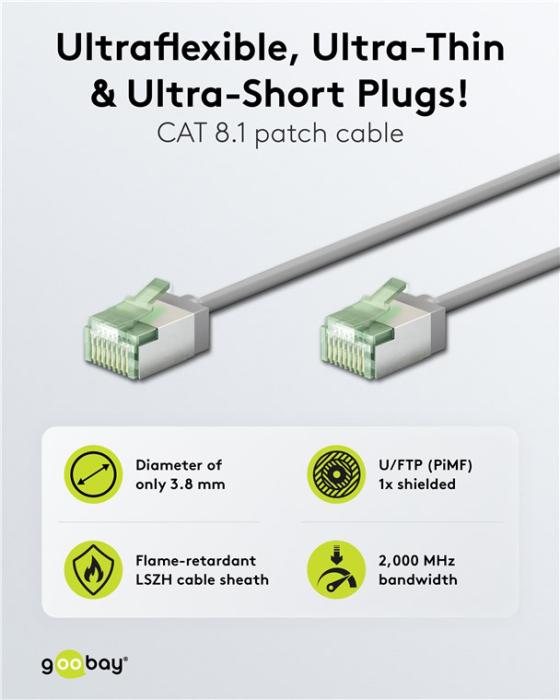 GOOBAY καλώδιο δικτύου 74344, CAT 8.1 U/FTP, ultra slim, copper, 40Gbps, 0.25m, γκρι