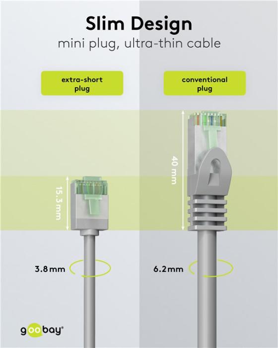 GOOBAY καλώδιο δικτύου 74348, CAT 8.1 U/FTP, ultra slim, copper, 40Gbps, 3m, γκρι