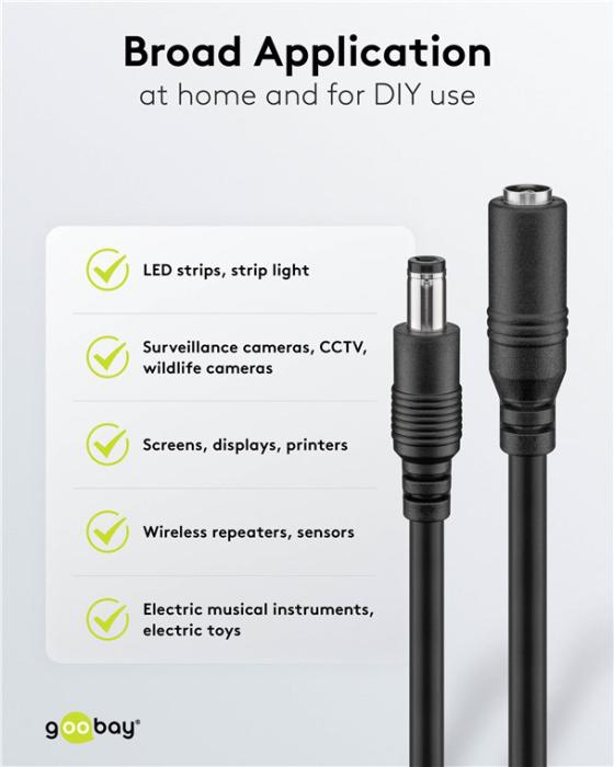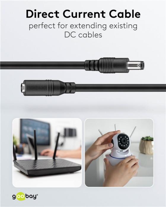 GOOBAY καλώδιο προέκτασης τροφοδοσίας 76635, 5.5x2.1mm, 1.5m, μαύρο