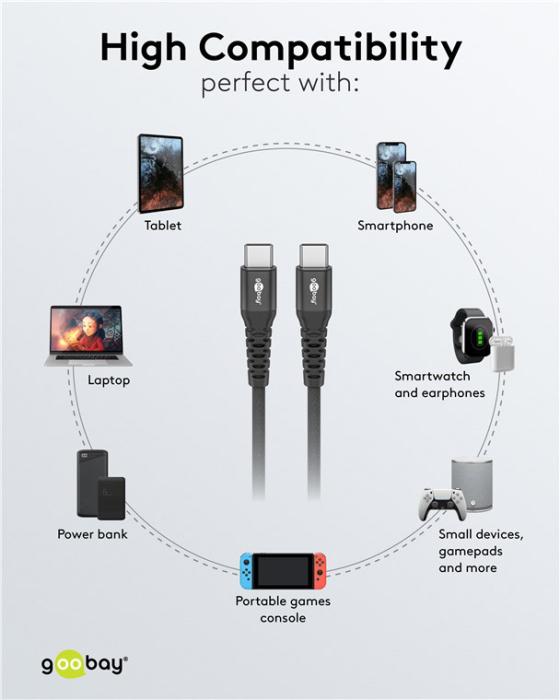 Καλώδιο φόρτισης και μεταφοράς δεδομένων USB-C σε USB-C της Goobay.