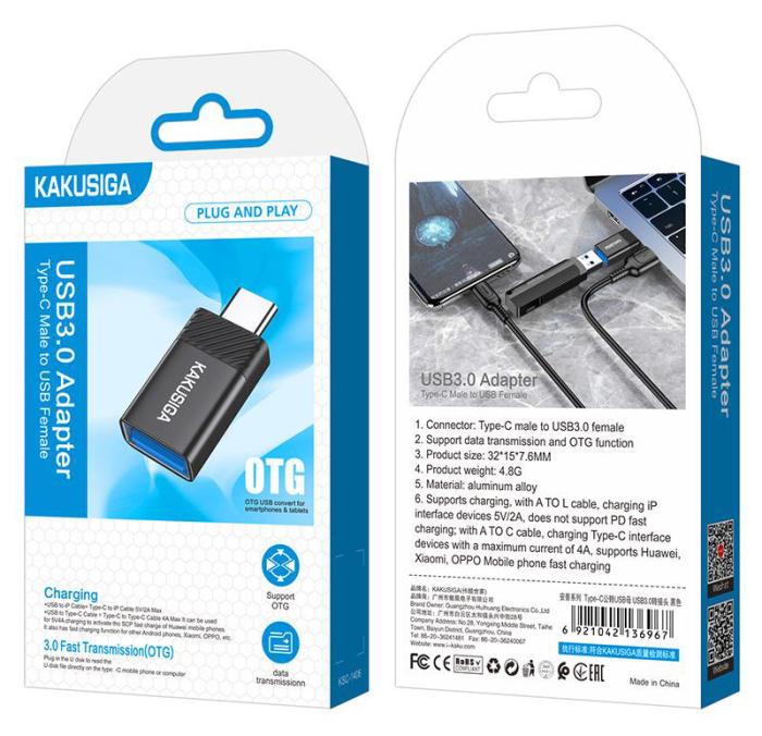 KAKUSIGA αντάπτορας USB-C σε USB KSC-1406, 5Gbps, 4A, μαύρος