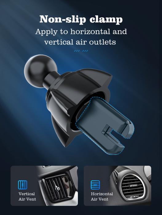 Ασύρματος φορτιστής και βάση αυτοκινήτου με στήριξη σε οριζόντιους ή κάθετους αεραγωγούς του αυτοκινήτου.