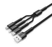 LDNIO καλώδιο USB σε USB-C/Lightning/Micro USB LC93, 3.4A, 1.2m, γκρι