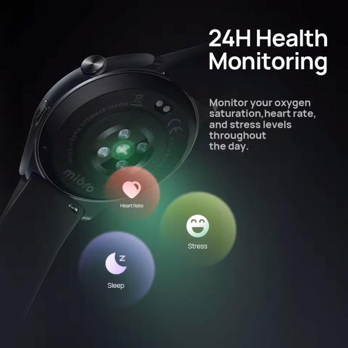 Κομψό smartwatch από την Mibro με ανθεκτική κατασκευή και εντυπωσιακή έγχρωμη οθόνη αφής 1.3" AMOLED που προσφέρει την δυνατότητα να έχετε την οθόνη του smartwatch πάντα ενεργοποιημένη.