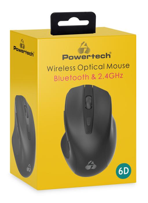 POWERTECH ασύρματο ποντίκι PT-1250, 2.4GHz & Bluetooth, 1600DPI, μαύρο