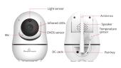 Εξοπλίζεται με υψηλής απόδοσης μικρόφωνο και ηχείο για αμφίδρομη μεταφορά φωνής και ήχου. Υποστηρίζει Pan & Tilt λειτουργία και 4x ψηφιακό zoom για μεγαλύτερη ευελιξία προβολής. Χάρη στη νυχτερινή όραση υπερύθρων, προσφέρει καθαρή, ασπρόμαυρη εικόνα, για την παρακολούθηση ακόμη και στο σκοτάδι.
