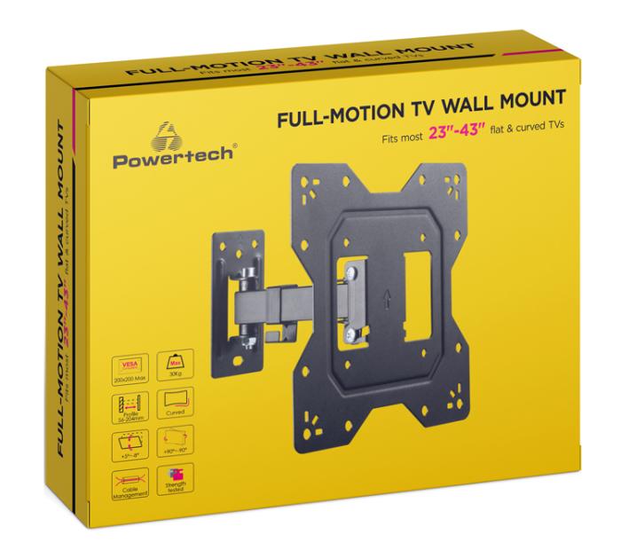 POWERTECH επιτοίχια βάση τηλεόρασης PT-1128, 23-43", έως 30kg, full motion