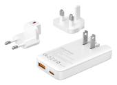POWERTECH φορτιστής τοίχου PT-1532, EU/UK/CN βύσμα, USB/USB-C, 65W, GaN, λευκός