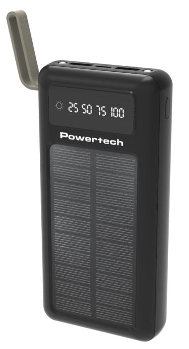 POWERTECH ηλιακό power bank PT-1084 με καλώδια & οθόνη, 20000mAh, μαύρο