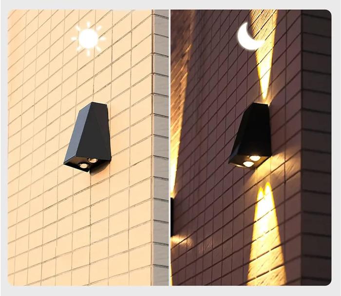LED φωτιστικό εξωτερικού χώρου της Powertech, με φωτιστικά σώματα και στις 2 πλευρές του (1x πάνω & 2x κάτω). Ενσωματώνει αισθητήρα φωτός που επιτρέπει την αυτόματη ενεργοποίηση του φωτιστικού την νύχτα και απενεργοποίηση του την ήμερα.