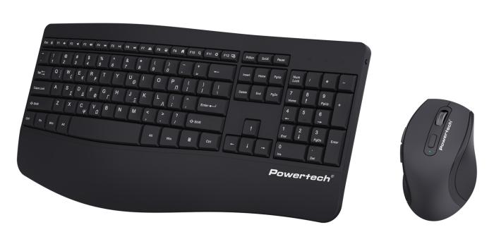 Set περιφερειακών της Powertech που αποτελείται από ασύρματο πληκτρολόγιο και ασύρματο οπτικό ποντίκι. Είναι συμβατά με συσκευές όπως desktop, laptop, tablet κλπ.