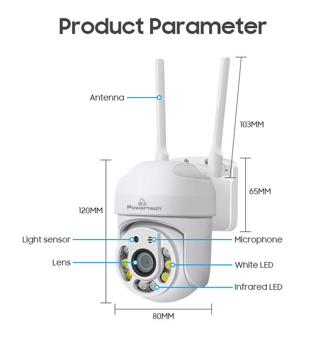 Η smart κάμερα ασφαλείας της Powertech, καταγράφει κάθε κίνηση σε καθαρή, υψηλής ευκρίνειας ανάλυση, με έγχρωμη εικόνα, ακόμη και κατά την διάρκεια της νύχτας. Διαθέτει φακό 3.6mm με αισθητήρα ανάλυσης 2MP και υποστηρίζει auto tracking αλλά και PTZ λειτουργία.