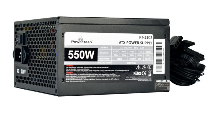 POWERTECH τροφοδοτικό για PC PT-1102, 550W, ATX, 120mm Fan