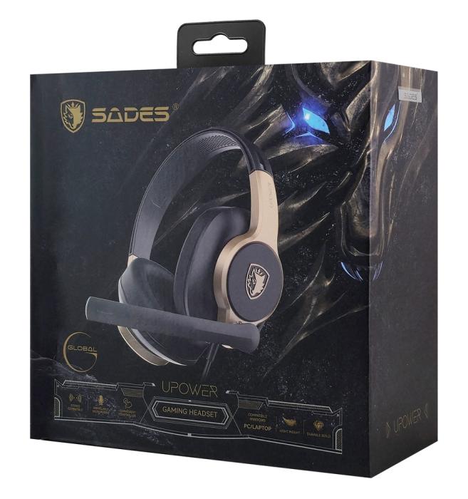 SADES gaming headset UPOWER, 3.5mm σύνδεση, 40mm, μαύρο/χρυσό