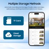 Η αποθήκευση των αρχείων γίνεται απευθείας σε κάρτα μνήμης micro SD (δεν συμπεριλαμβάνεται) ή σε λογαριασμό στο cloud.