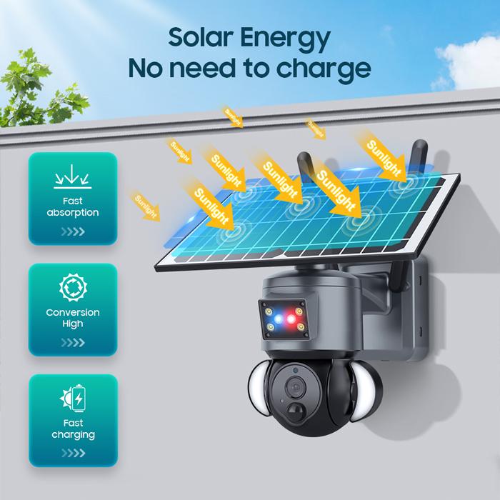 SECTEC smart ηλιακή κάμερα ST-S528M-4G-3MASR με προβολείς, 3MP, 4G, PTZ