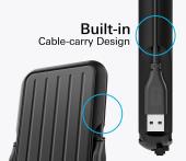 Ο cable-carry σχεδιασμός του, σας επιτρέπει να αποθηκεύετε το καλώδιο σύνδεσης με τον υπολογιστή πάνω στον σκληρό δίσκο.