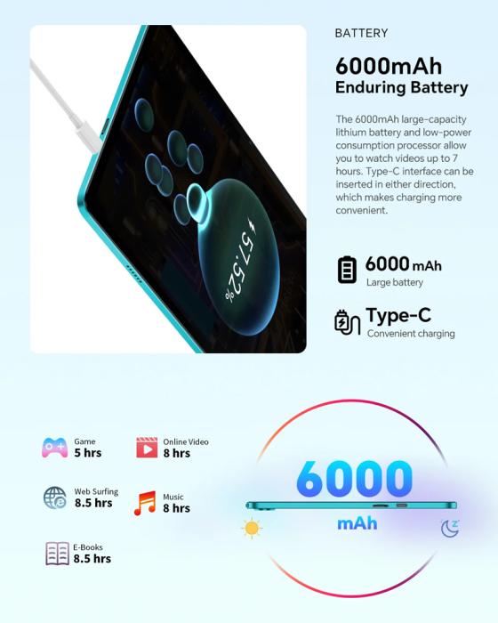 Με 4GB (+6GB virtual) RAM και 64GB ROM για να αποθηκεύετε τα αγαπημένα σας αρχεία, φωτογραφίες και βίντεο. Επιπλέον, προσφέρει την δυνατότητα να επεκτείνετε τον χώρο αποθήκευσης του tablet με κάρτα micro SD έως 1TB.